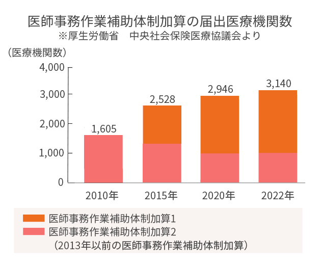 厚生労働省は2008年4月、病院勤務医の負担軽減を目的として、ドクターの事務作業を補助する「医師事務作業補助者」の配置を評価の対象としました。また、2016年には対象病院の範囲が拡大され、「医師事務作業補助者」のニーズは、さらに拡大傾向にあります。
